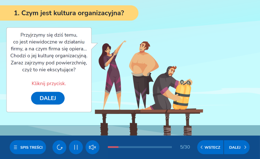Na podstawie zaakceptowanego przez Ciebie scenariusza w oprogramowaniu Articulate Storyline lub Rise tworzymy interaktywne szkolenie e-learningowe.