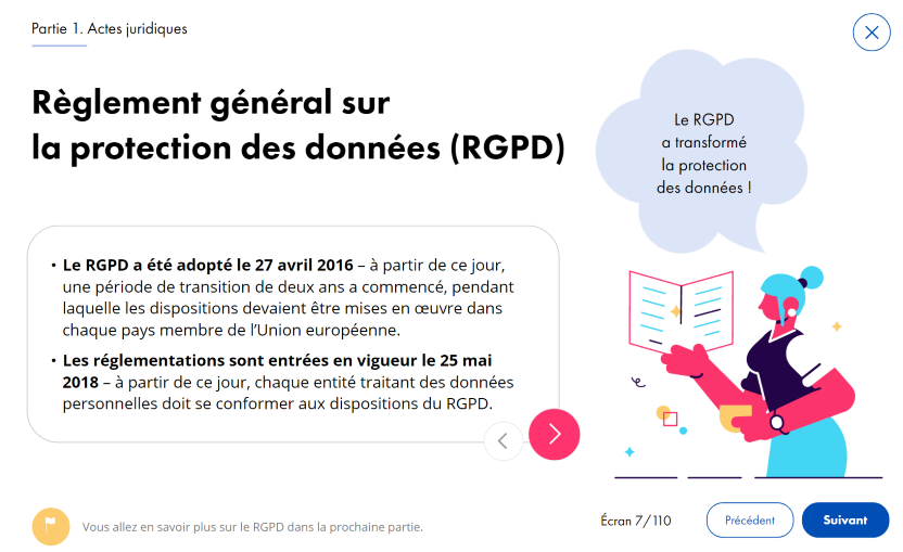 À la base de votre livre de marque et de la spécification technique, nous élaborons des propositions de mise en page, c’est-à-dire le design graphique du module e-learning.