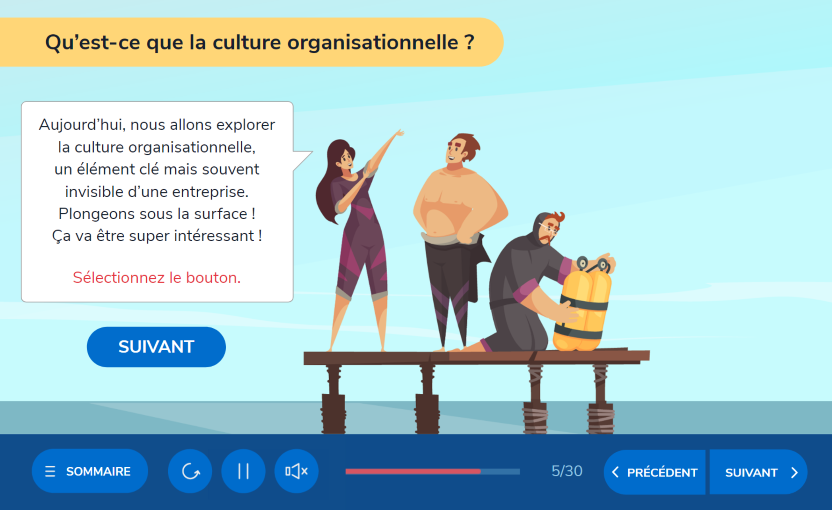 À partir du storyboard que vous avez validé, nous créons un module e-learning interactif en utilisant le logiciel Articulate Storyline ou Rise.